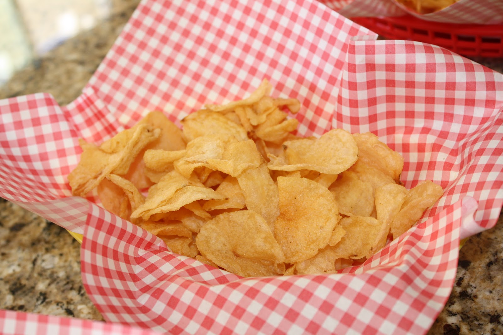 Here is my plate. The coleslaw was served in mini masons too. I loved how cute and "mini" it all looked. We served kettle chips too. Everything was so yummy. My mouth is watering going through pictures to write this post! Ha!